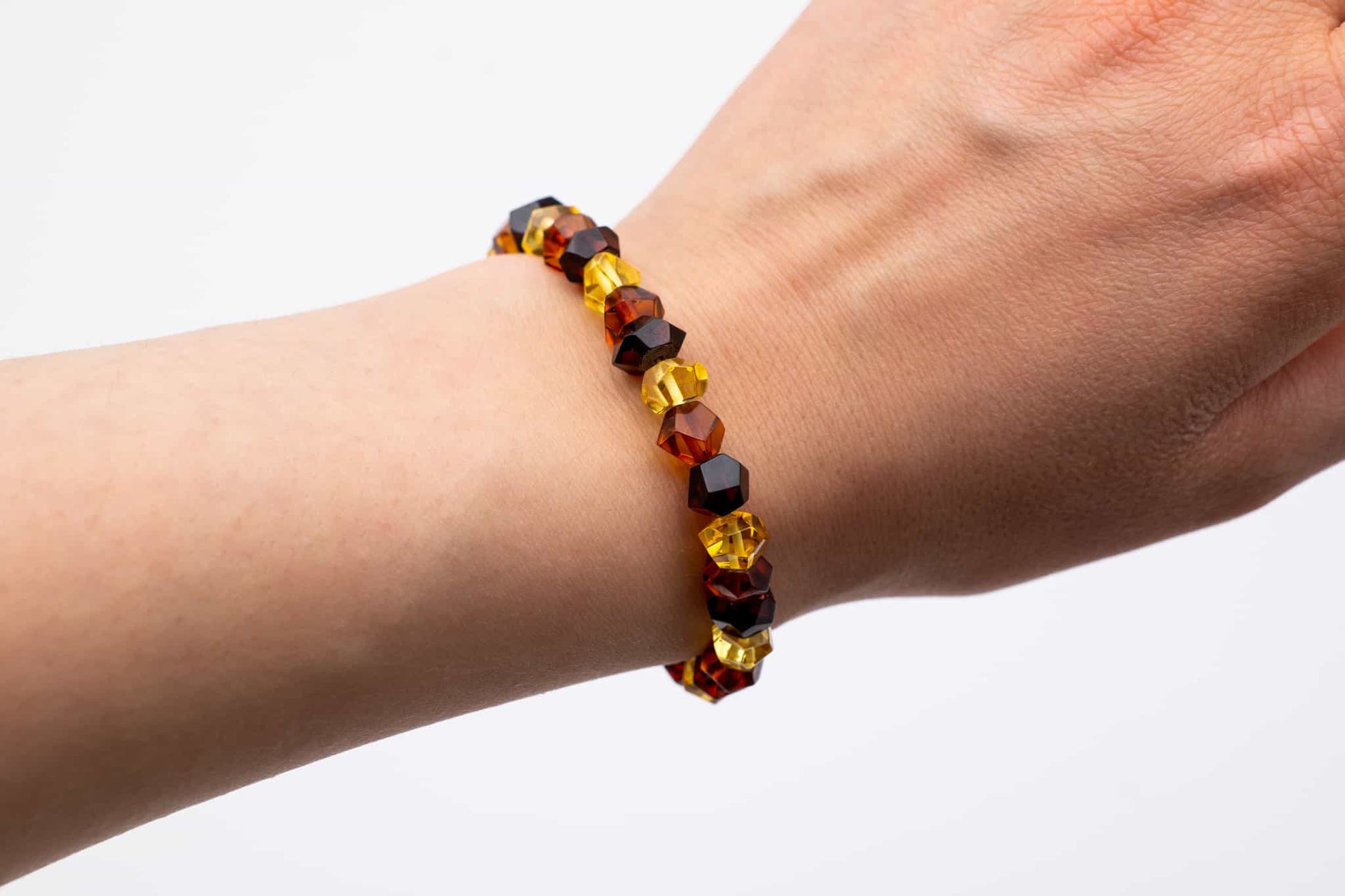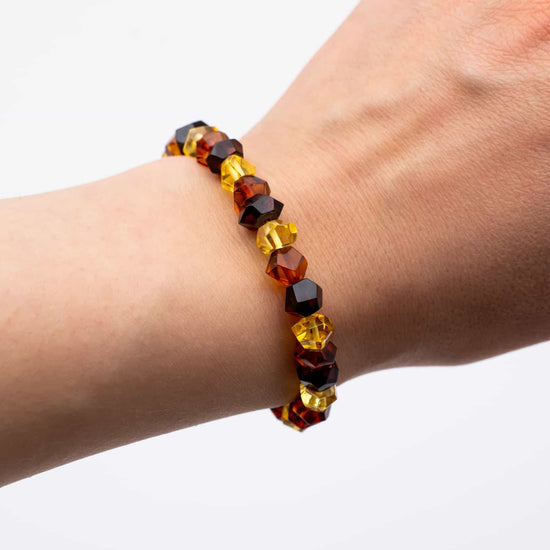 Apyrankė iš facetuotų įvairių spalvų gintaro karoliukų