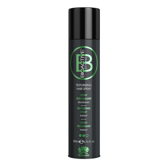 BIOACTIVE STYLING TEXTURIZING SPRAY tekstūrinis sausas lakas, vidutinio fiksavimo ir nematomas ant plaukų, akimirksniu suteikia plaukams švelnumo. Sukuria sodrią tekstūrą neapsunkindamas ir nesulipindamas plaukų, turi natūralų efektą.