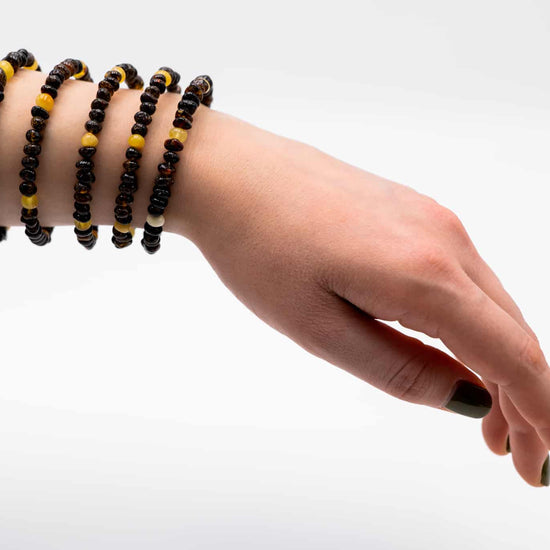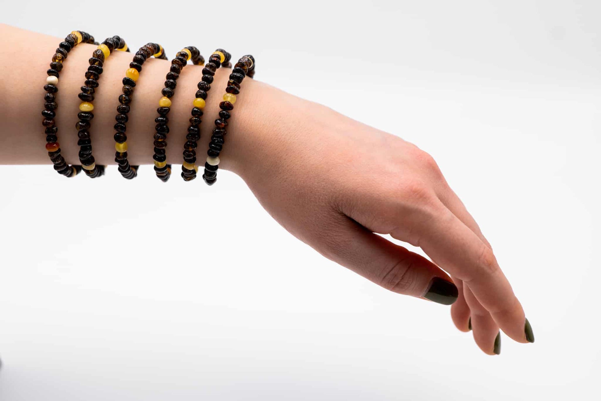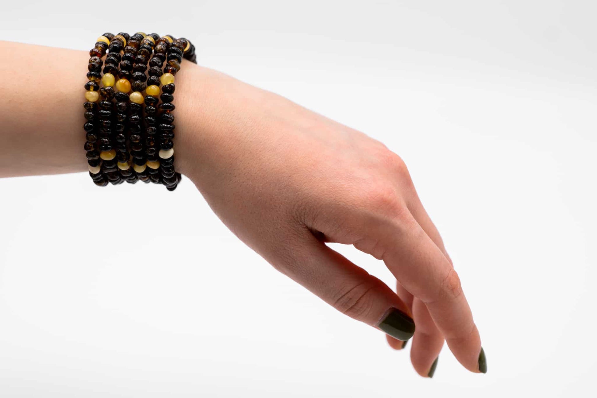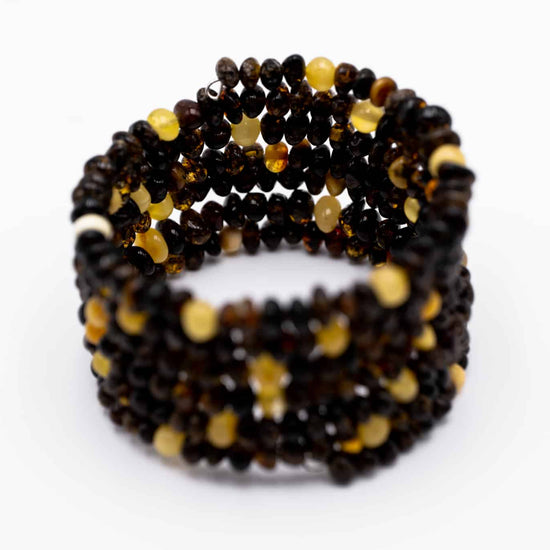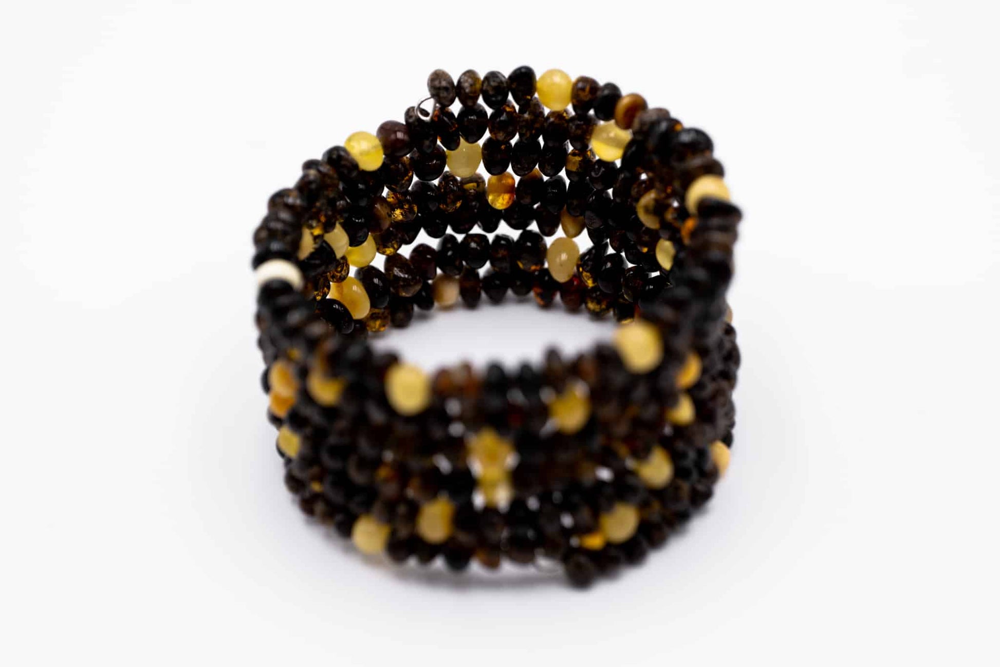 Naturalaus gintaro apyrankė suverta ant spiralinės vielos
