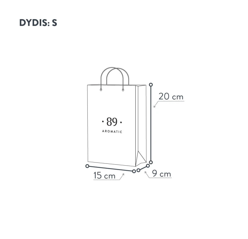 Elegantiškas ir tvirtas Aromatic89 popierinis dovanų maišelis (dydis L) – puikiai tinka didesnėms dovanoms ar keliems produktams supakuoti.