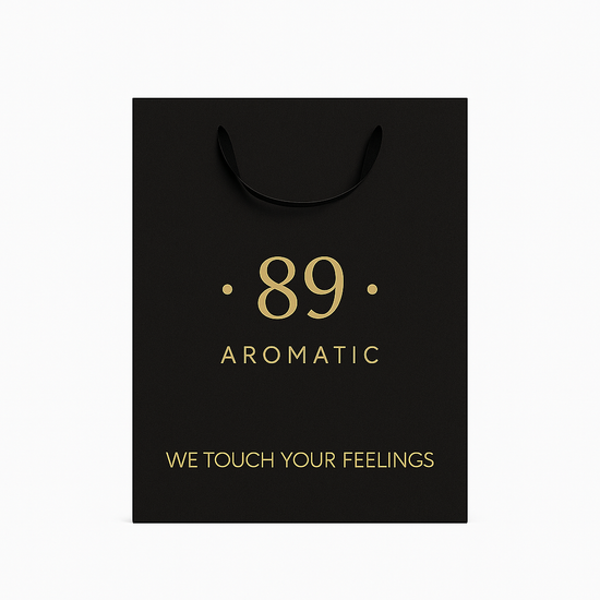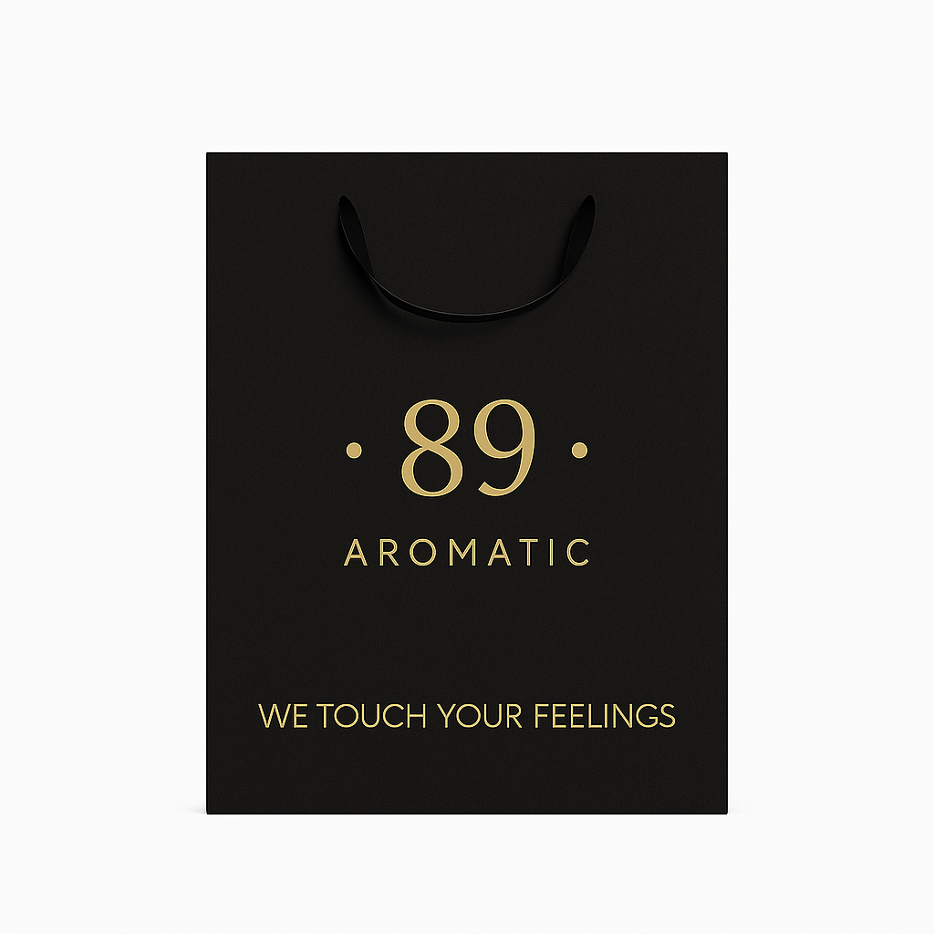 Minimalistinis dizainas su 89 Aromatic logotipu suteikia dovanai prabangos ir išbaigtumo įspūdį.