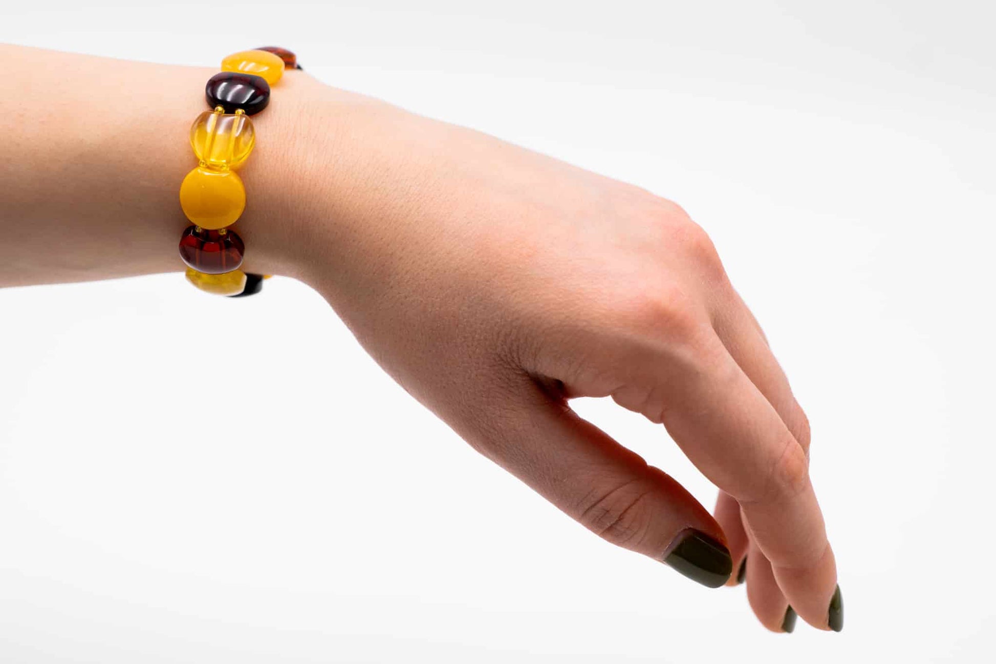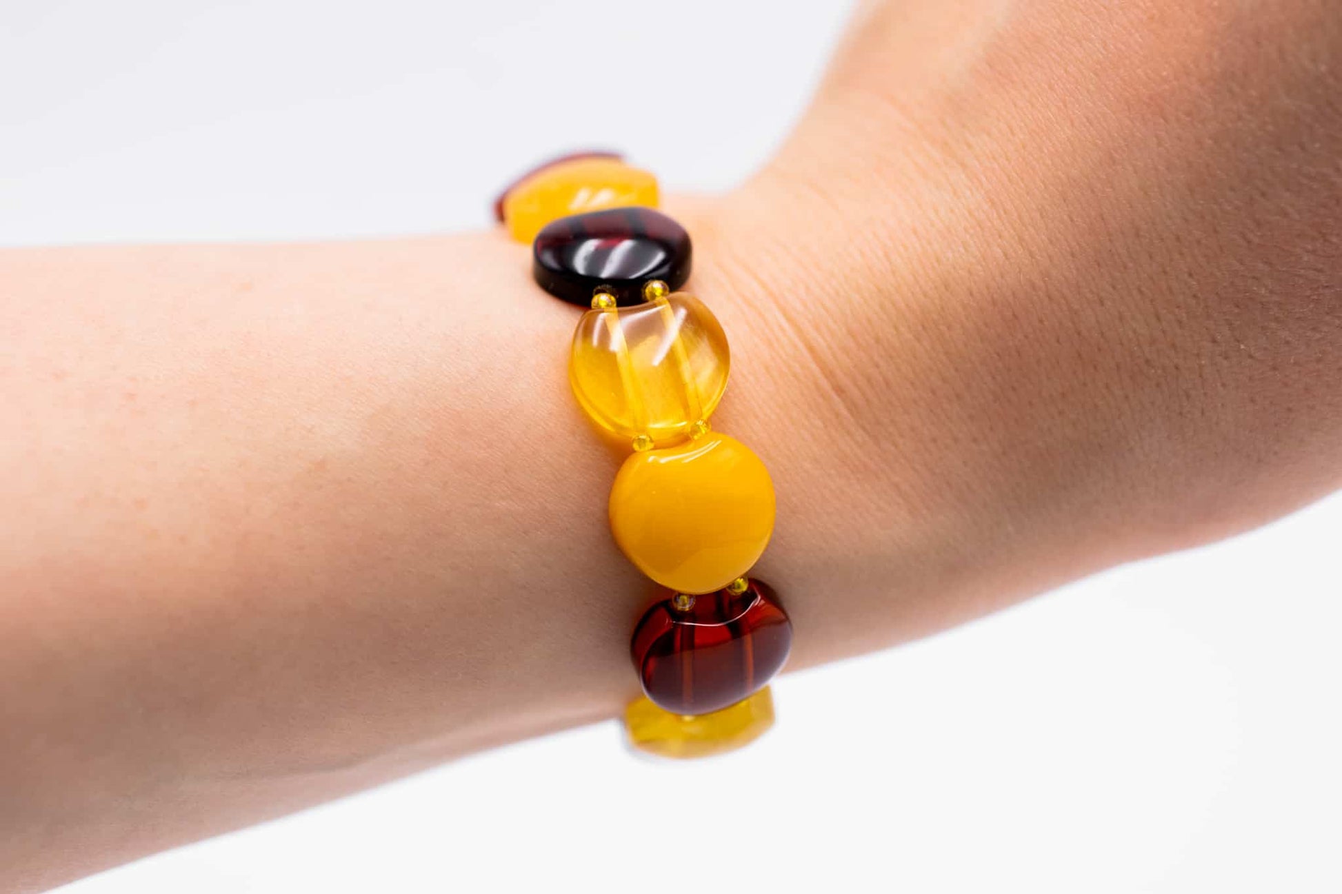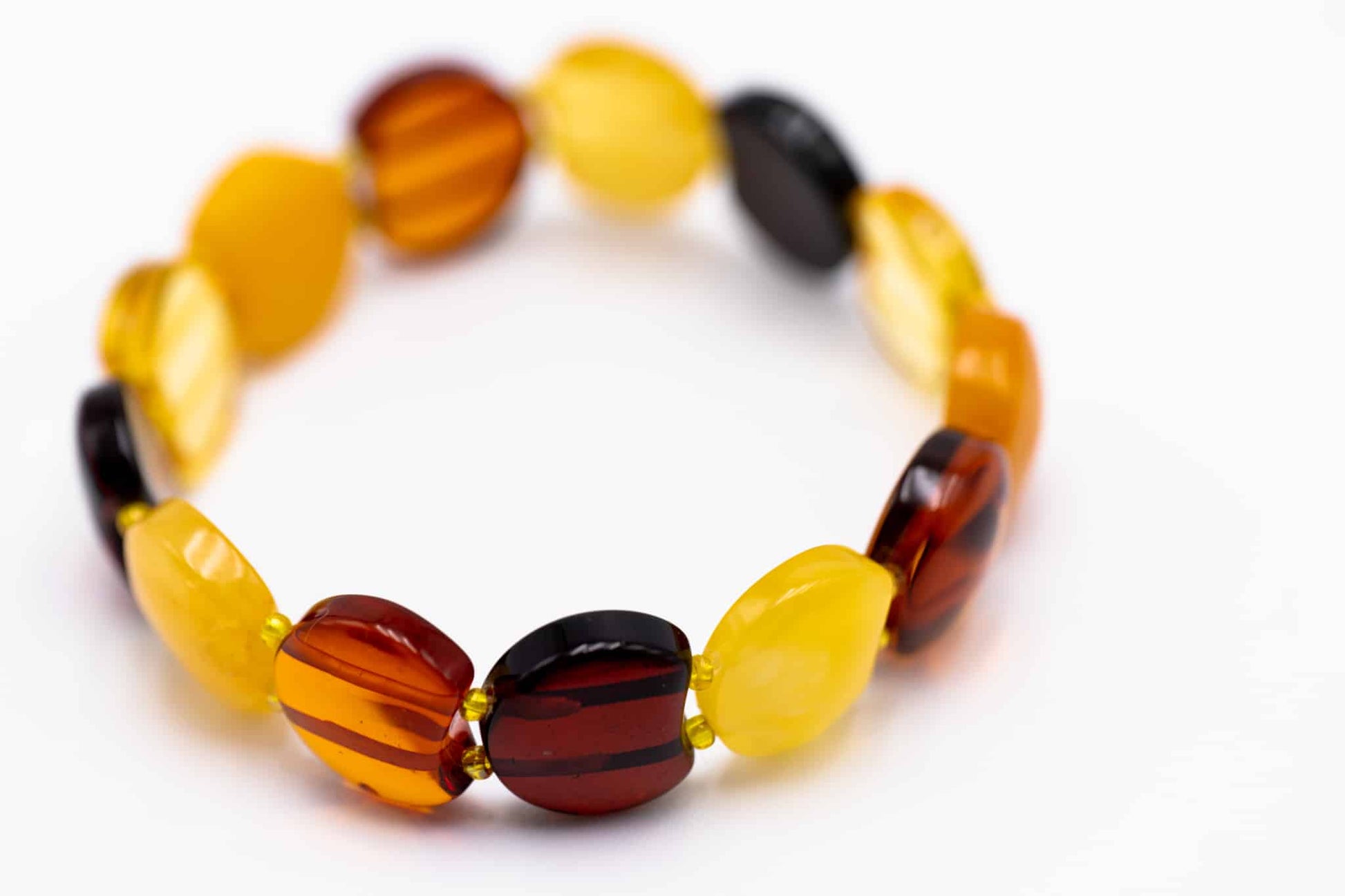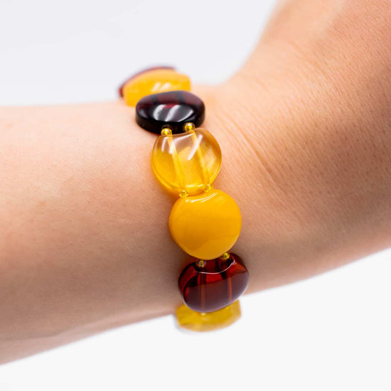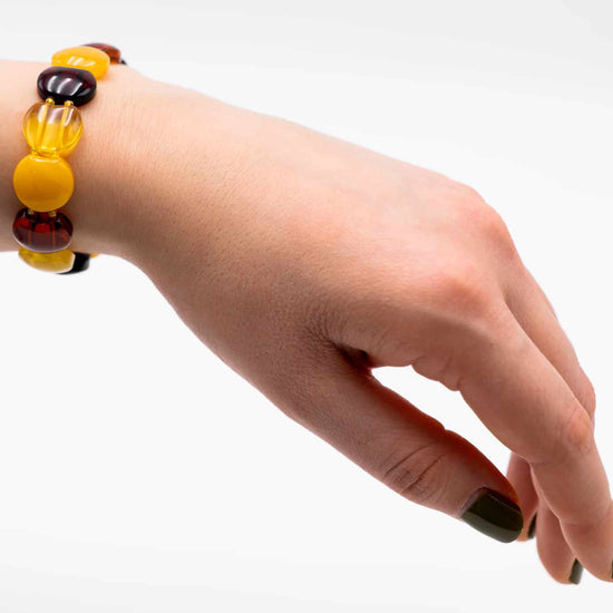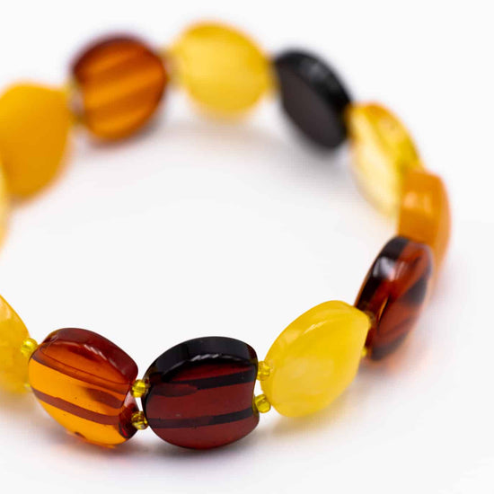 Šiltų spalvų gintarinė apyrankė