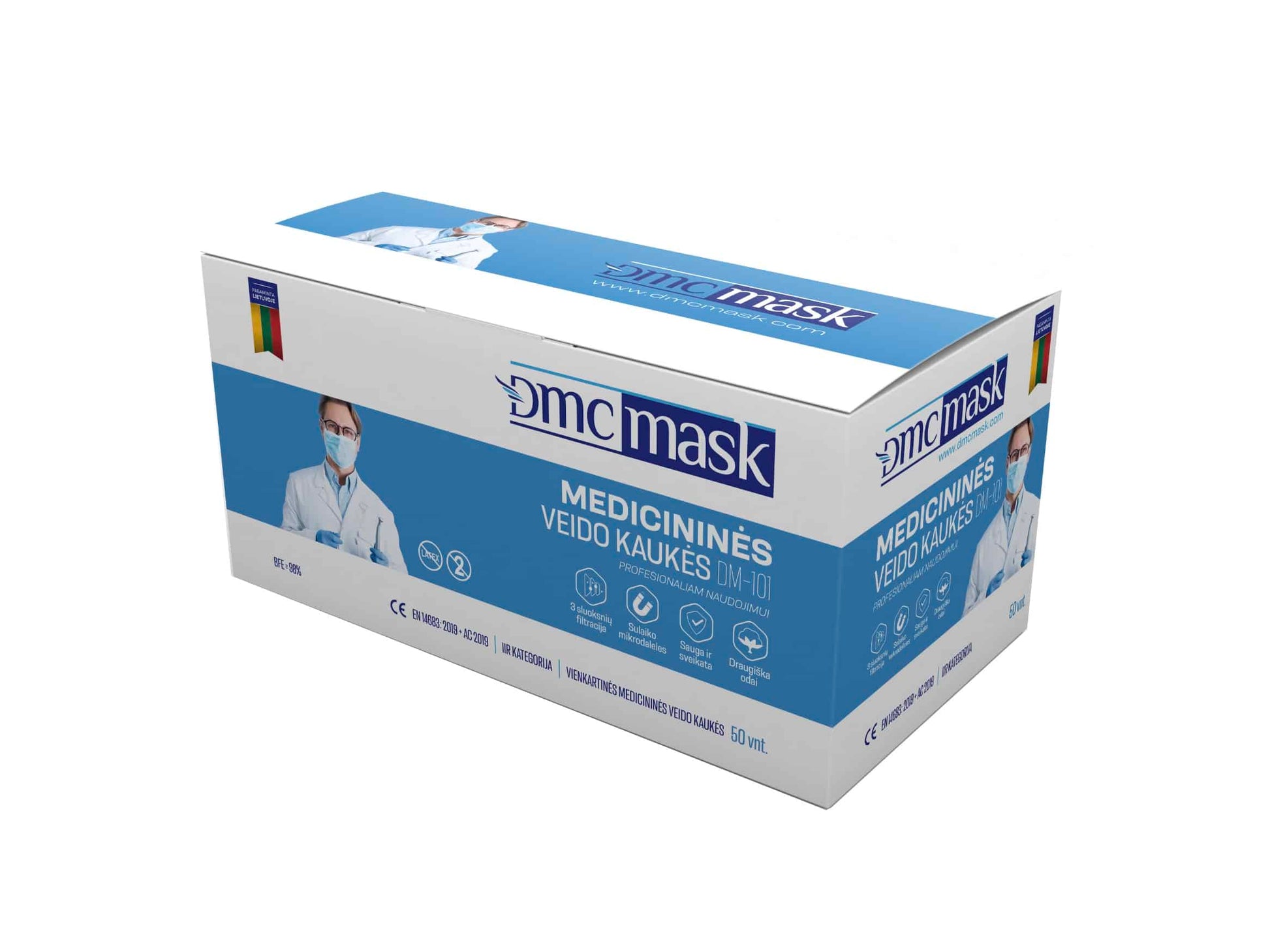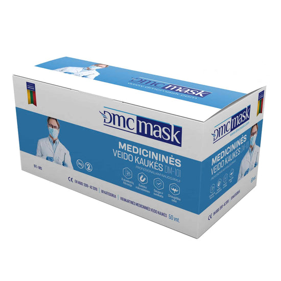 Vienkartinės mėlynos spalvos 3-jų sluoksnių veido kaukės